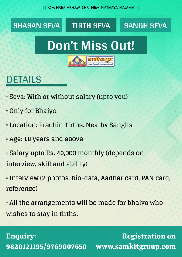 Shri Antariksh Tirth Raksha – Seva Dates – Only for Males – Bhiwandi